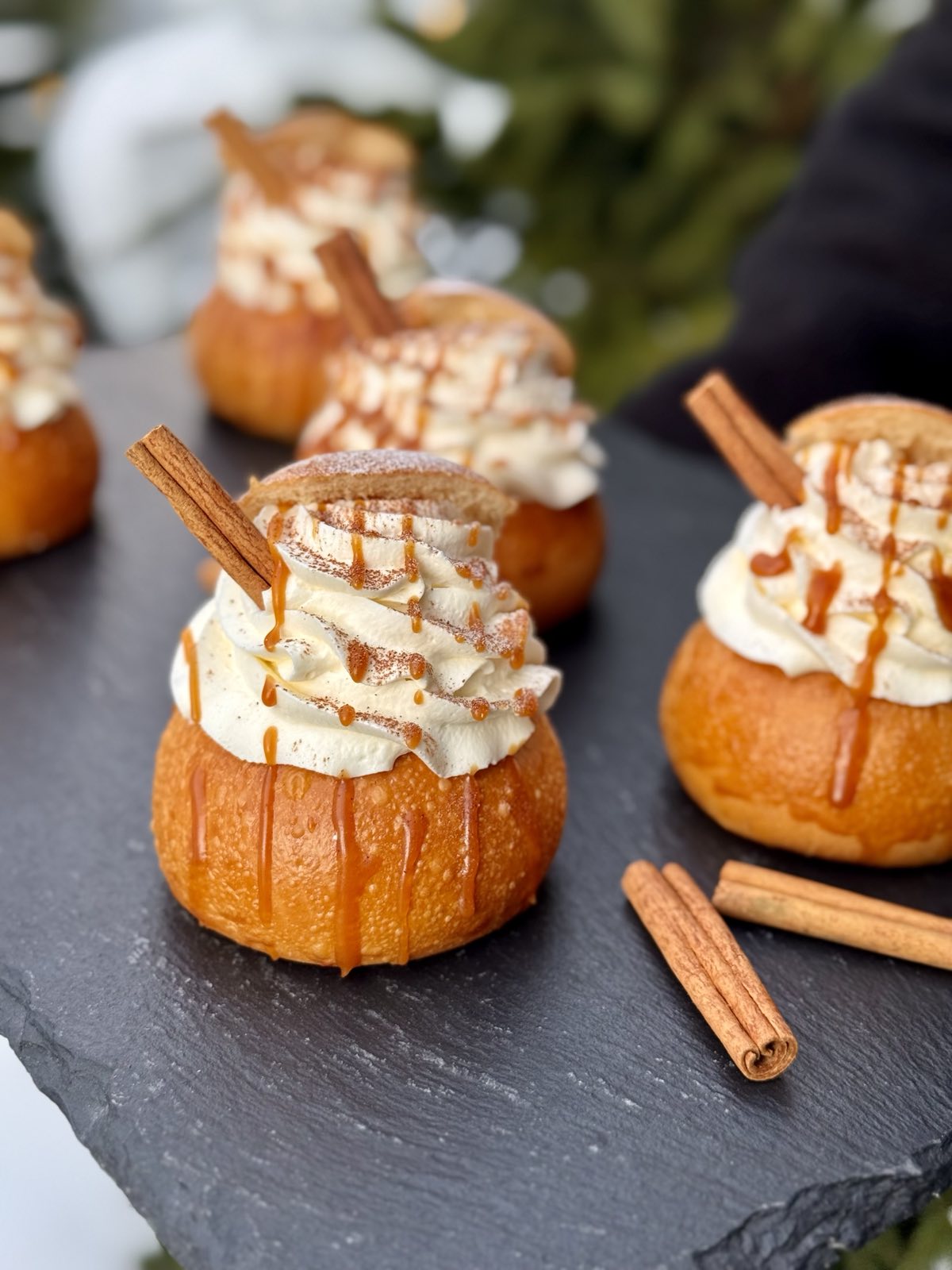 Koduse hõnguga Jaapani piimasaiast vastlakukkel, mille südames on aromaatne ahjuõunatäidis. Mahlane, kergelt karamelline õun kohtub õhulise kukli ja siidise vahukoorekreemiga, luues sooja ja nostalgilise maitseelamuse. Ideaalne valik neile, kes armastavad klassikalisi maitseid väikese vürtsika nüansiga.